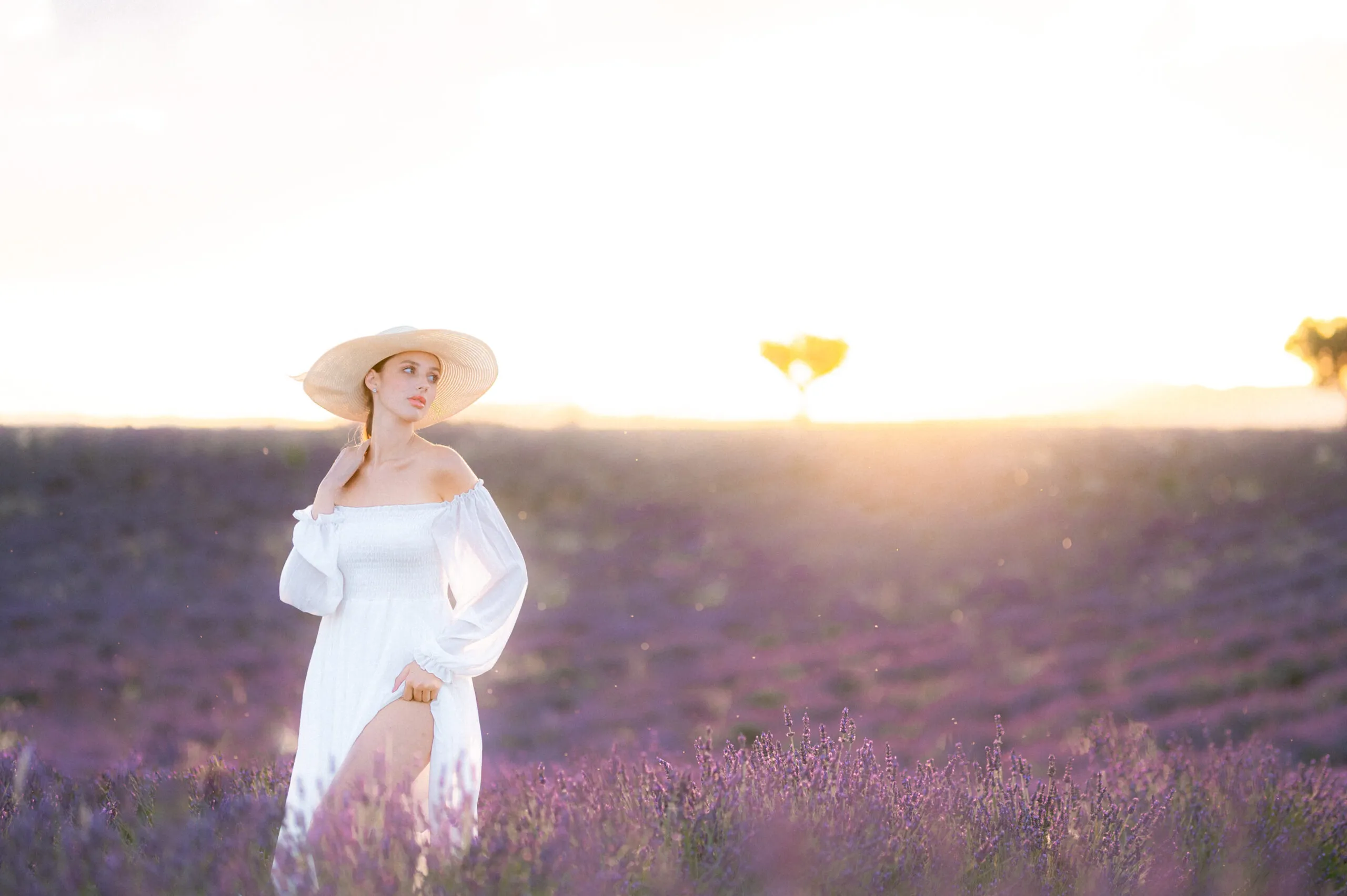 Dress and Accessories: Encourage your subject to wear colors that complement the lavender hues, such as soft pastels or neutral tones. Consider incorporating accessories such as a straw hat, a bouquet of lavender or a vintage chair to add depth and interest to your portraits.