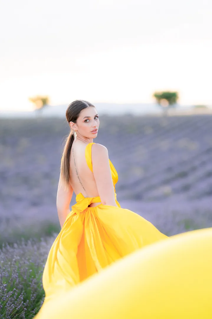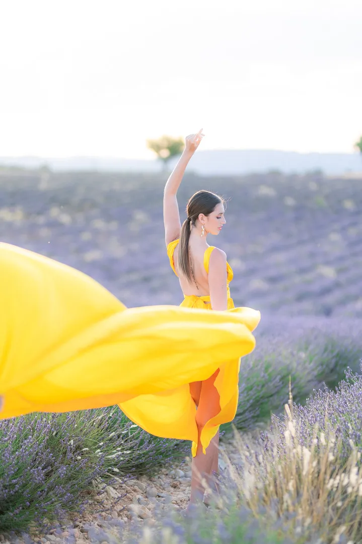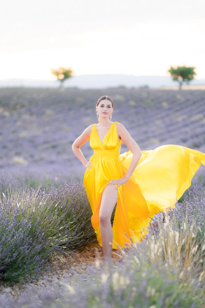 Des champs de lavandes à perte de vue, et cette fleur jaune qui dénotait parmi les tons pourpres et violacés. Cela m’a inspiré pour réaliser ces photos de portrait de Laurie.